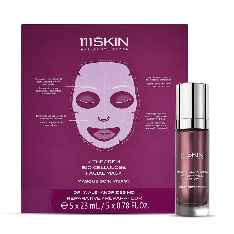 The Repair Serum NAC Y²™ is your daily essential for tightening and firming, helping to reduce the appearance of fine lines while deeply nourishing the skin. It works to sculpt and tone, giving your face a lifted, more defined look. The Y Theorem Bio Cellulose Facial Masks deeply hydrate the skin, while the blend of active ingredients calm irritation, reduce redness, and promote healing.